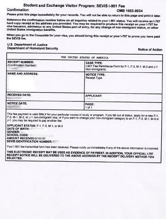 HERE. Your school code is on your I-20. This payment is different to the fee you paid when you booked your appointment. We recommend doing this a minimum of 3 working days before the visa appointment so the payment is registered in the system. To print the receipt, open the link and select "check I-901 status" then fill in the information and click on check status/view payment confirmation". You