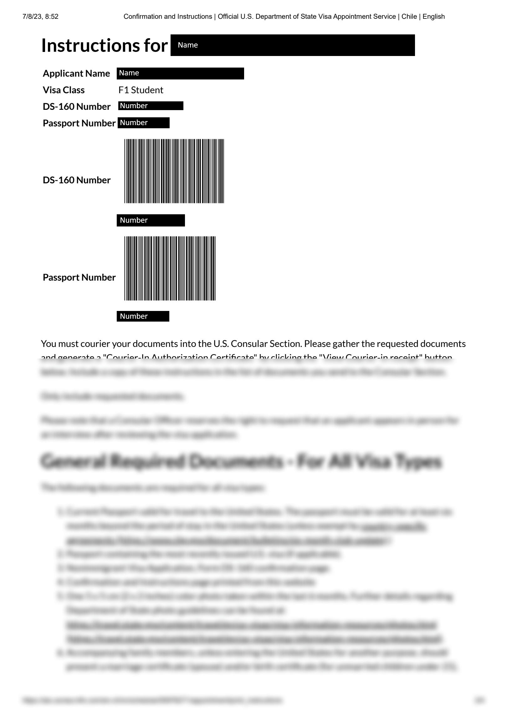 Go to the ‘Print instructions’ section of your Visa Appointment Service account